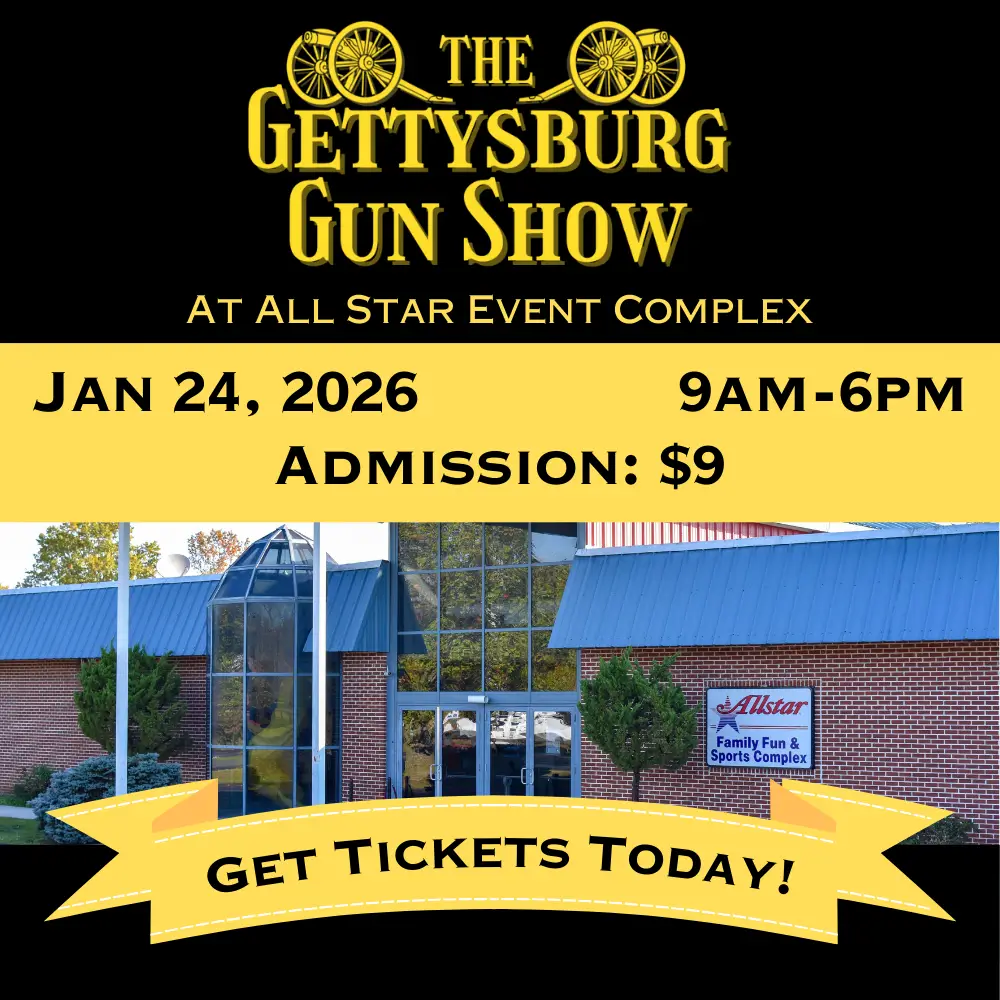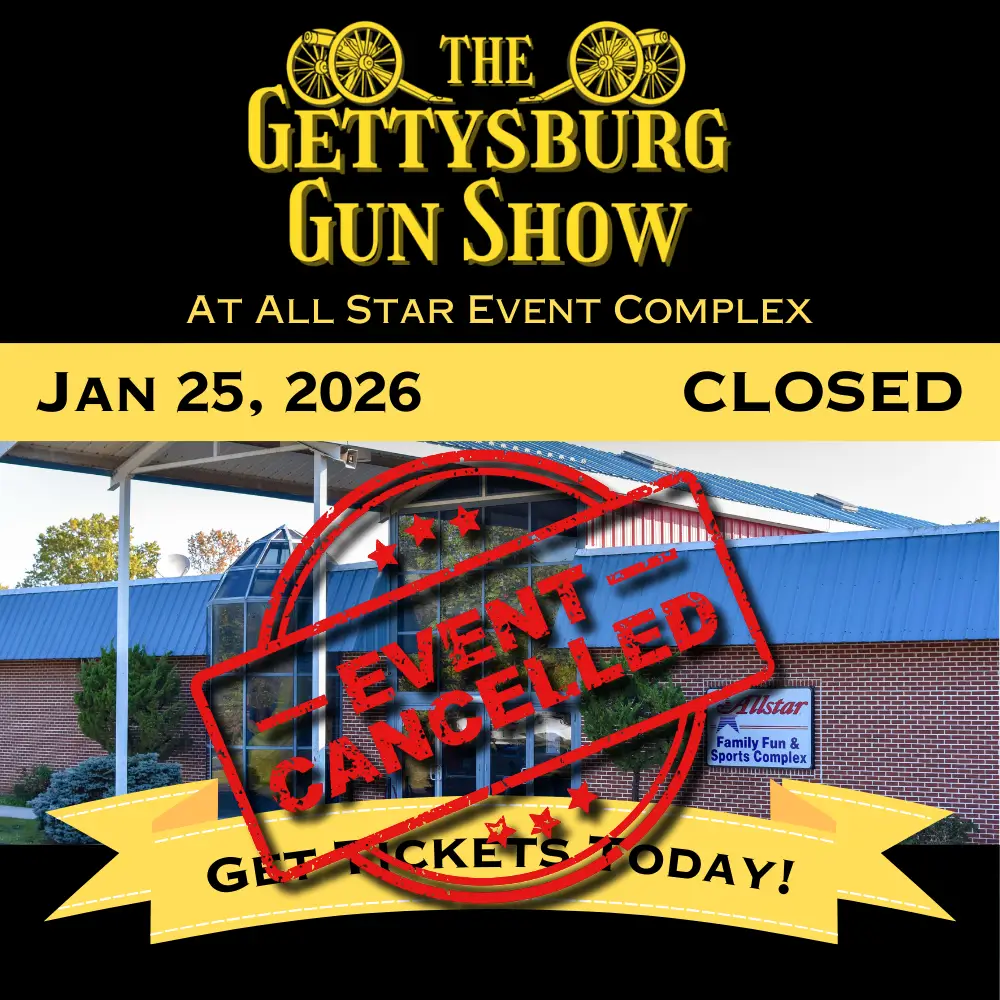 All Star Event Complex 2638 EMMITSBURG ROAD, GETTYSBURG, PA, United StatesGet your tickets to the Gettysburg Gun Show on January 24, 2026 and join Eagle Shows at the All-Star Event Complex to shop firearms, knives, ammo, and more!